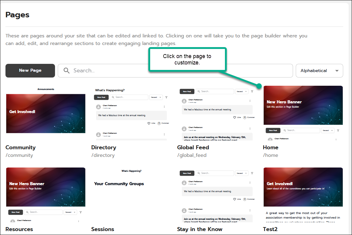 You can have an endless number of pages for your Community. As you get started, determine which pages you would like to start with (you will always be able to add additional pages later on.) .