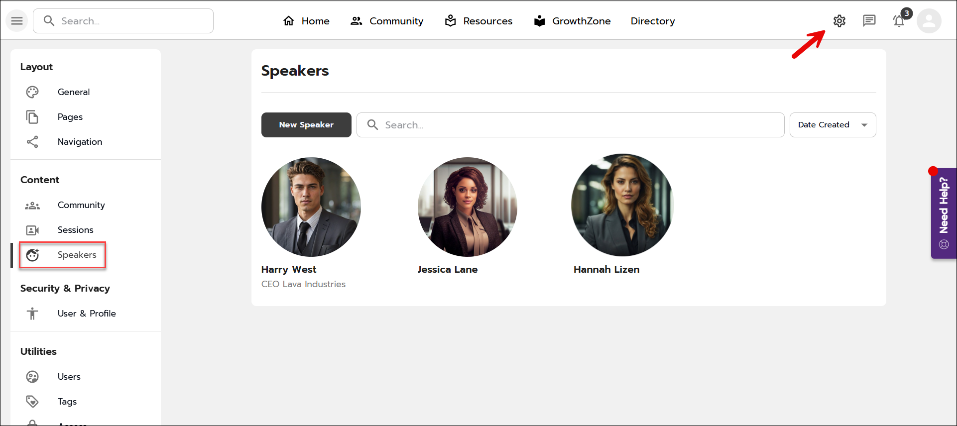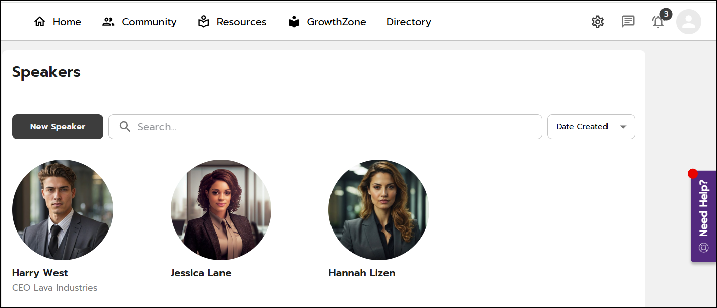You can include a speaker page in your Community site. Each speaker is highlighted on a speaker page which includes their photo, biography, and which sessions they’re speaking at. To make the page interactive, you can include a Favorite button, a Complete button, and downloadable resources.