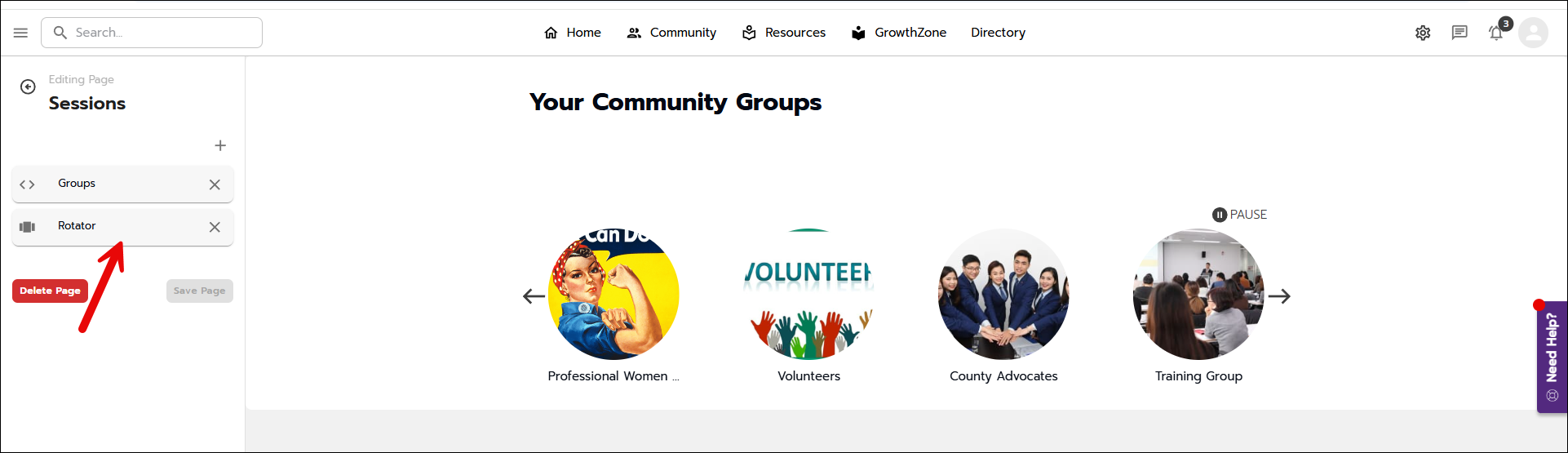 You have now created a rotator for the page. Each time you update your content (for example, add a new group) the content will automatically be displayed in the rotator.