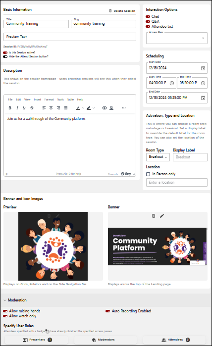 - Attendee List: This option is enabled to display the attendee list for the session.