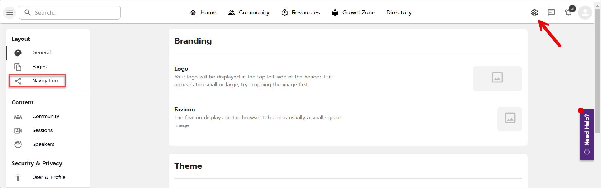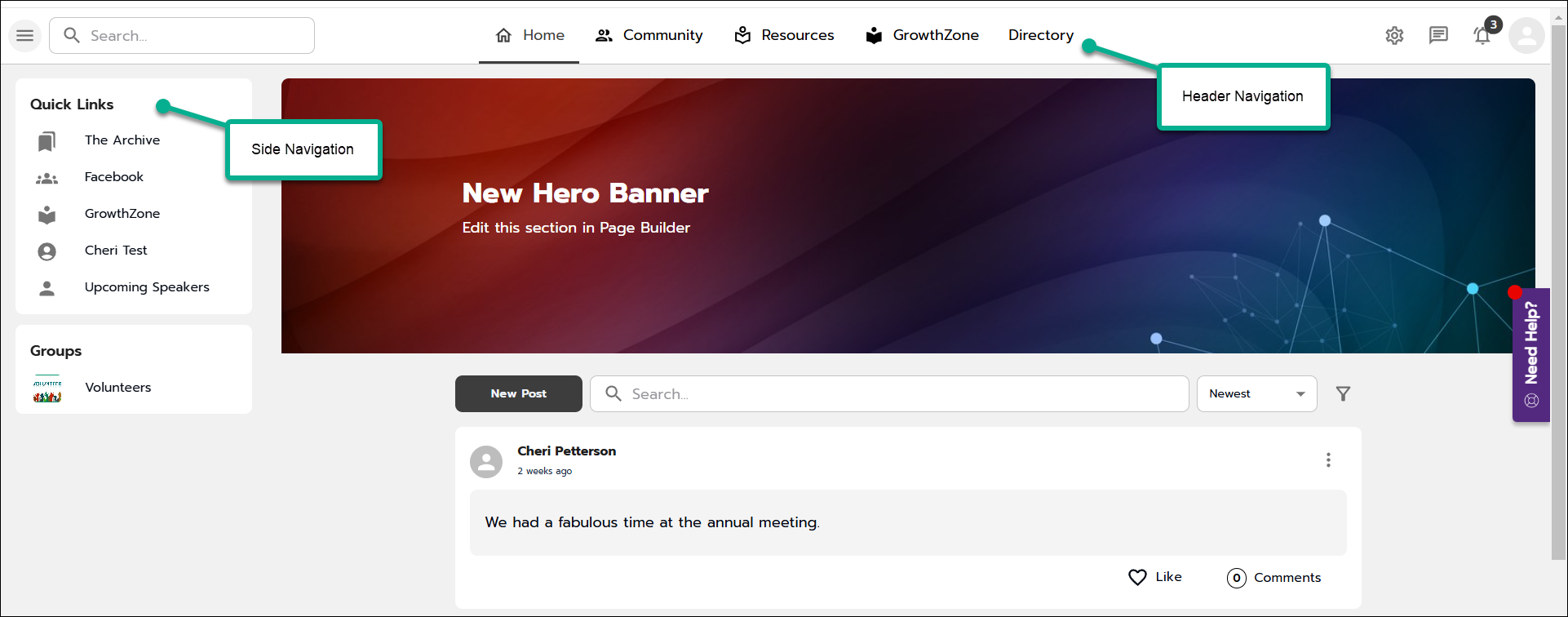 A navigation menu is an organized set of links to the community pages. There are two areas where you can set up navigation: